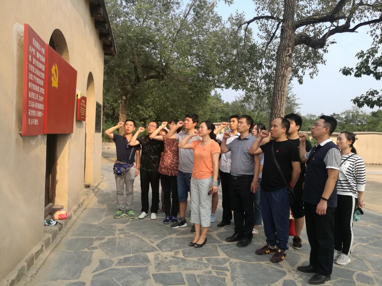 在七届二中全会的会址前面有一面鲜红的党旗,党旗旁边还书写着庄严的入党誓词,在大家的一致认可下,在这个特别有纪念意义的地方,我们一起重温了入党誓词,激起大家回想积极要求入党时的激情和追求,以及入党宣誓时的庄严承诺和奋斗决心,增强了支部党员的光荣感、责任感和使命感。