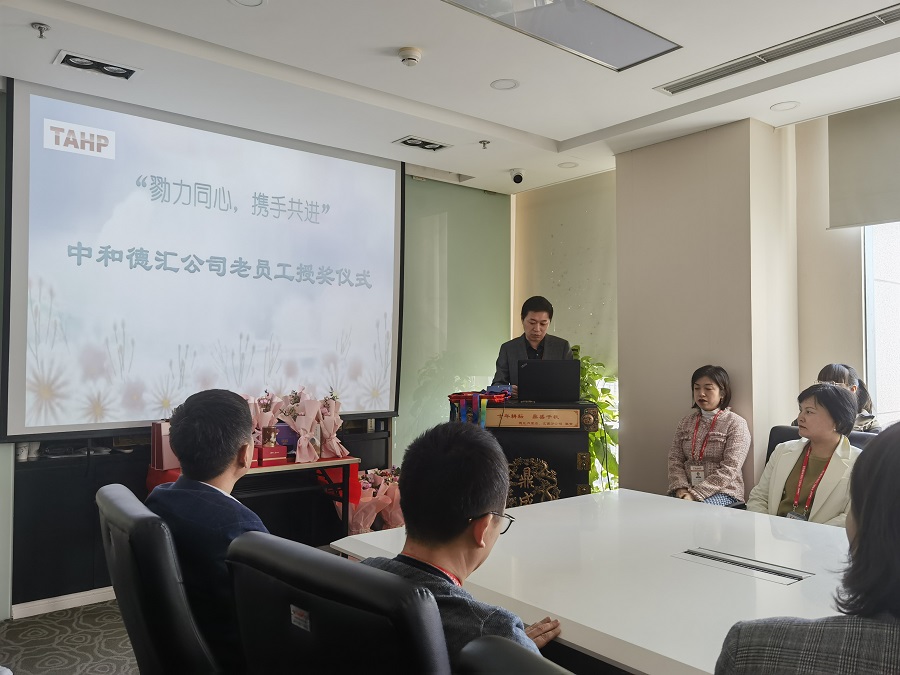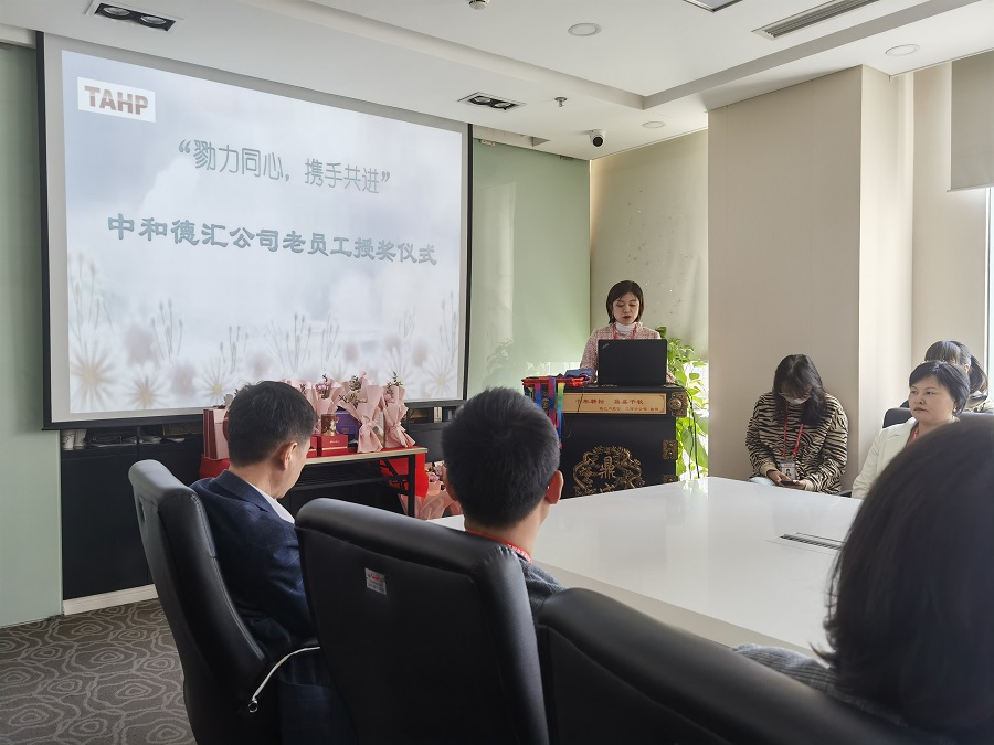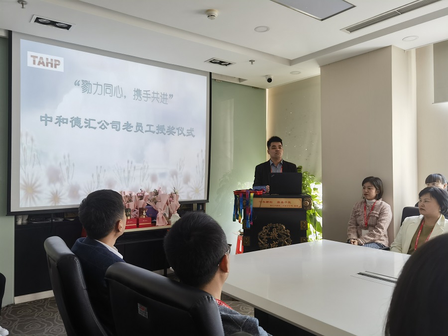 今天我们聚集在这里举行的是“勠力同心,携手共进”中和德汇老员工的授奖仪式。我们这次仪式简单但是庄重且意义重大。也是公司第一次为十年以上老员工进行嘉奖。这次仪式也是一个开始,未来企划部将更加注重企业文化氛围,举办更多的活动来让我们的员工更加深刻的体会中和德汇文化。