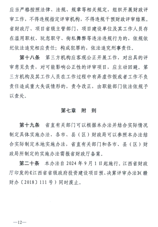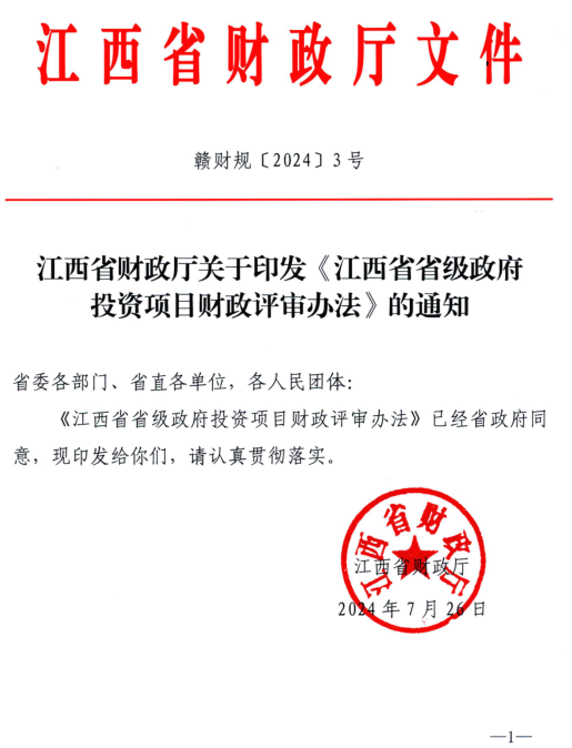 江西省财政厅关于印发《江西省省级政府投资项目财政评审办法》的通知