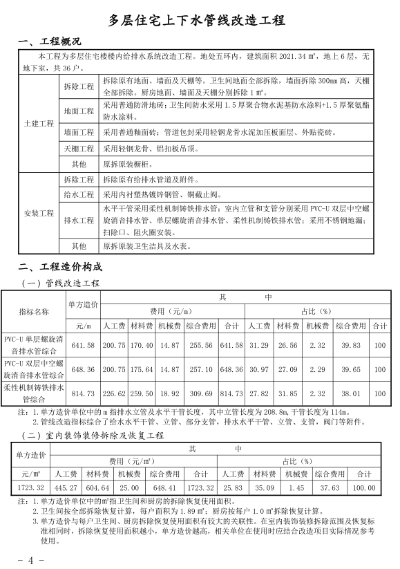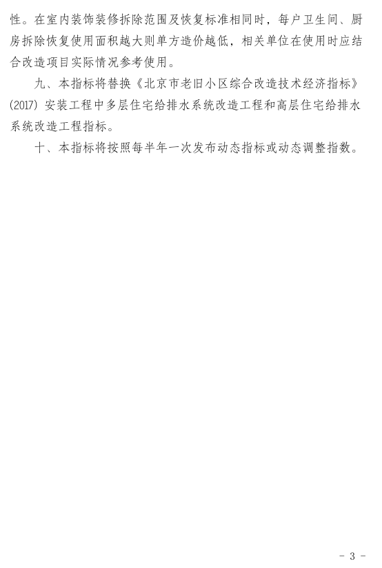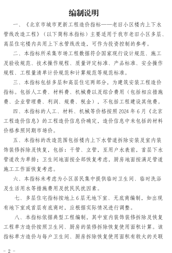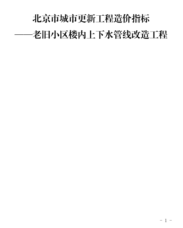 北京市住房和城乡建设委员会发布《北京市城市更新工程造价指标——老旧小区楼内上下水管线改造工程》