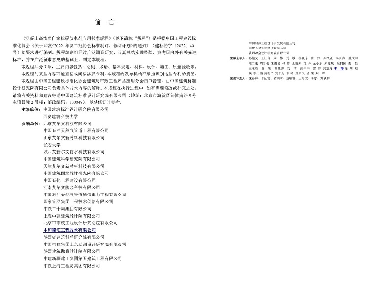 近日,经中国工程建设标准化协会批准,继我公司参编的《混凝土高浓缩自愈抗裂防水剂(T/CECS 10461-2025)》发布后,我公司参编的配套行业技术规程T/CECS 1979-2025《混凝土高浓缩自愈抗裂防水剂应用技术规程》也正式发布,并将于 2026年1月1日起实施。本规程对高浓缩自愈抗裂防水剂的材料、设计、施工、质量验收等进行了系统性规范。