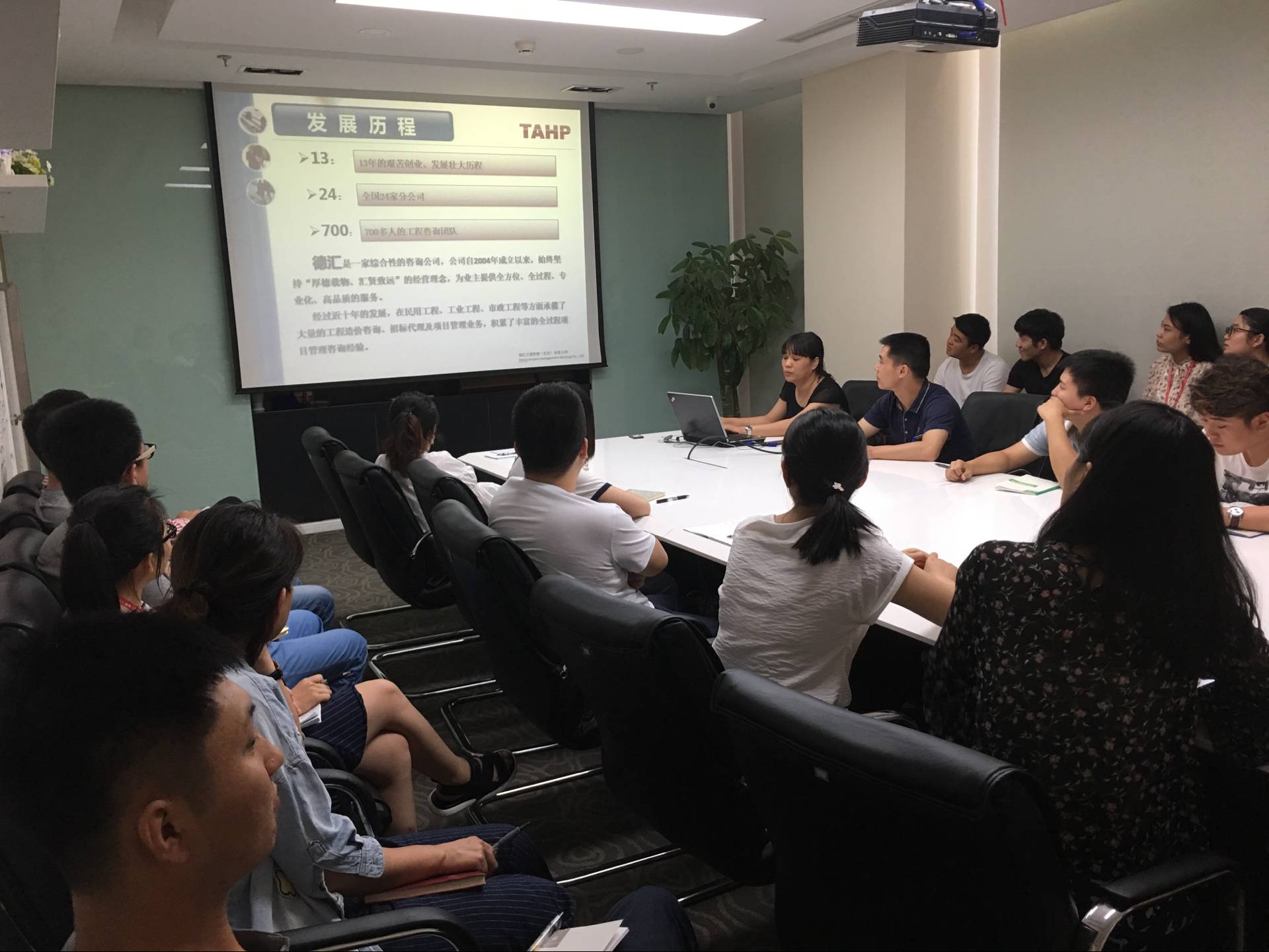 6月29下午,公司组织今年第二季度新员工入职培训,造价三部经理王丽君介绍了公司基本情况和业务业绩,综合部经理唐辉介绍了公司行政和人事相关制度规定,培训取得了良好的效果。